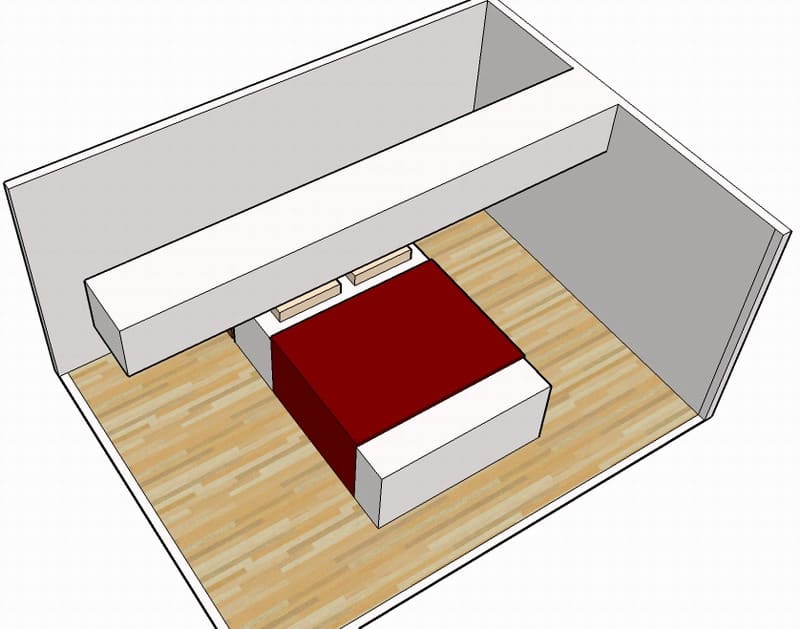【2】樑壓床中間、床尾位置:如果完全無法避開那建議