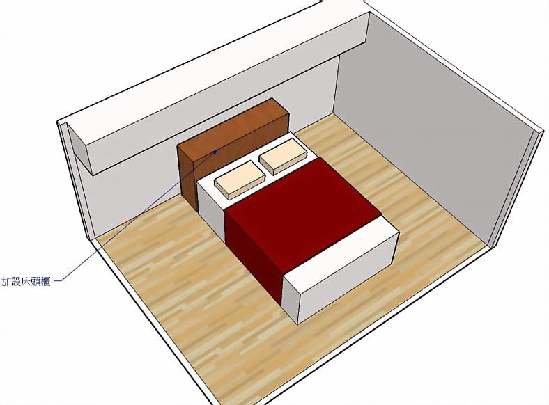 【1】床頭壓樑:可以用床頭櫃來避開化解。