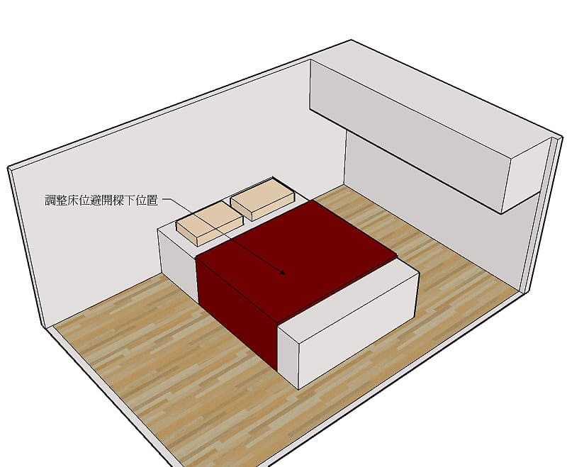 調整床位避開樑下之位置來擺設床鋪才是治本上策。