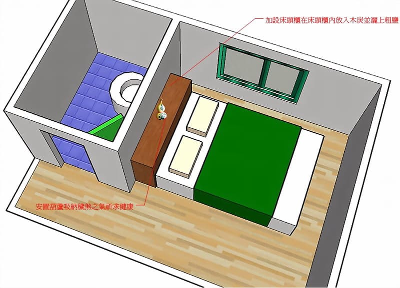 調將床位將床頭靠非廁所牆面才是治本上策。