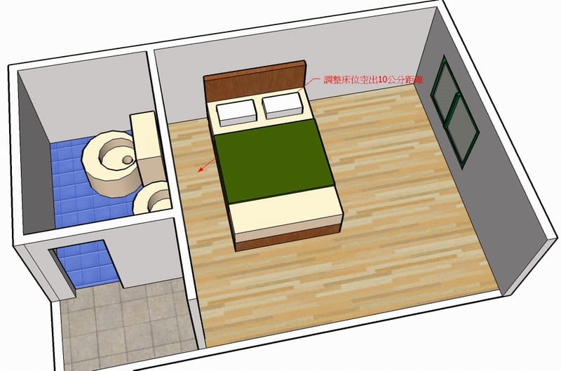 建議最好調整床位距離廁所牆面10公分以上才是治本之道。