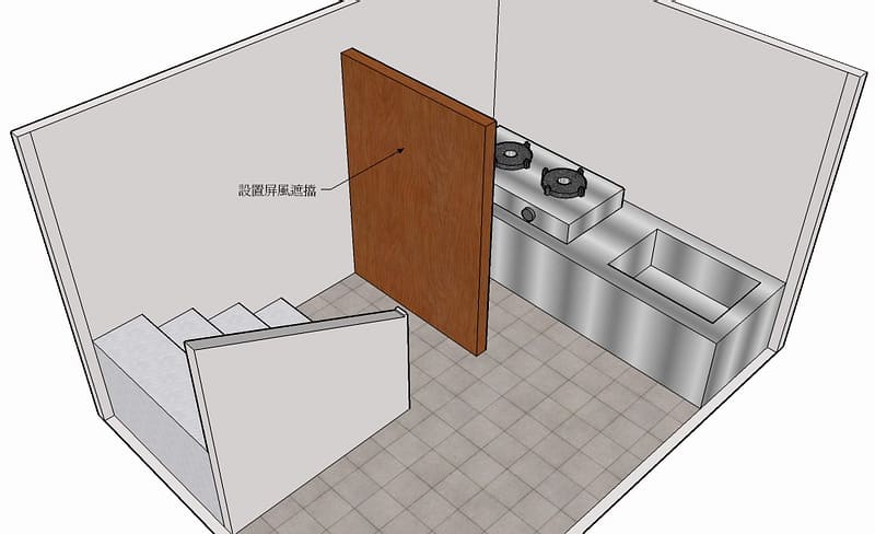 調整瓦斯爐之位置或是設置屏風遮擋, 此為治本上策。