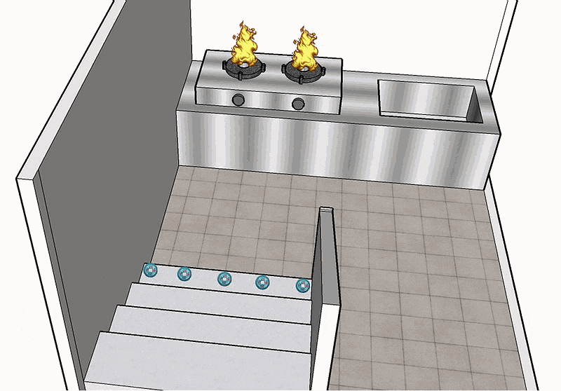 如果無法調整瓦斯爐之位置或是設置屏風遮擋那建議您可以在樓梯口