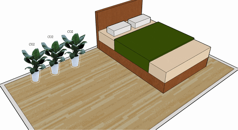 直接將盆栽移除為治本之道,如果真的無法宜除那在不影響睡眠下搭配照明讓植物行光合作用來化解。