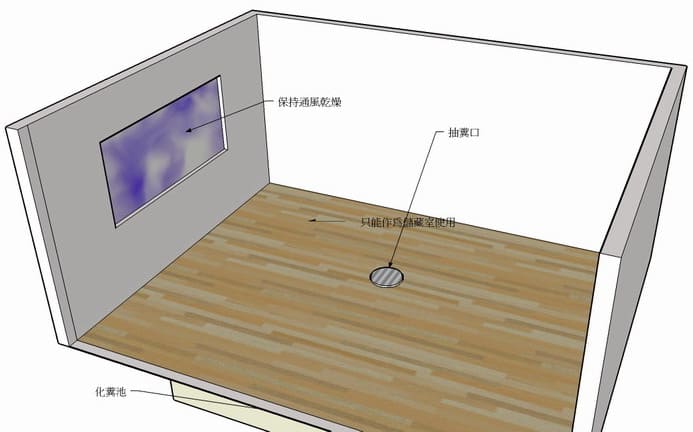 化糞池房間 只能作為儲藏室使用,不可繼續居住於此房間。