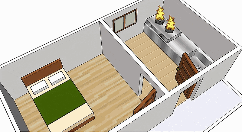 房間門不可開於廚房內,如果將房間門開於廚房內,