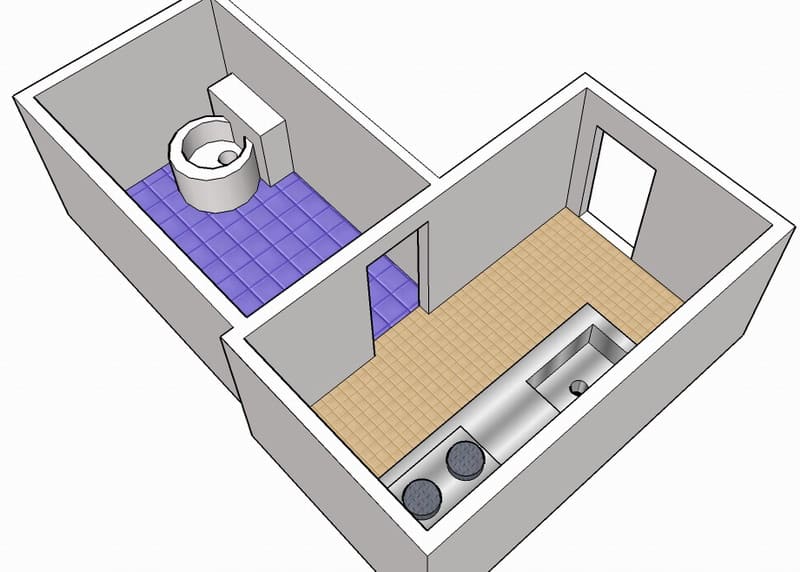 廁所之穢氣會直接流入廚房內,污染廚房內之食物,