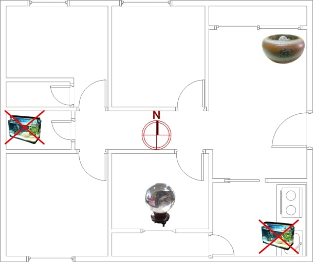 洩財位落於正西方和東南方,所以此兩方位不可擺放魚缸不然會導致漏財。