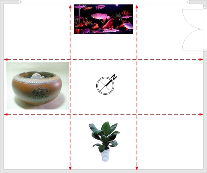 東南方我們可以擺放「長綠闊葉盆栽或魚缸」來招財;