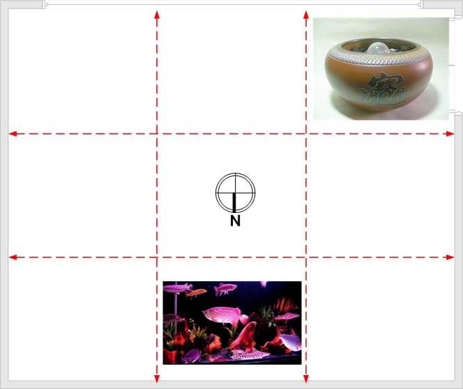 正北方我們可以擺放「魚缸或是流水飾品」來招財;