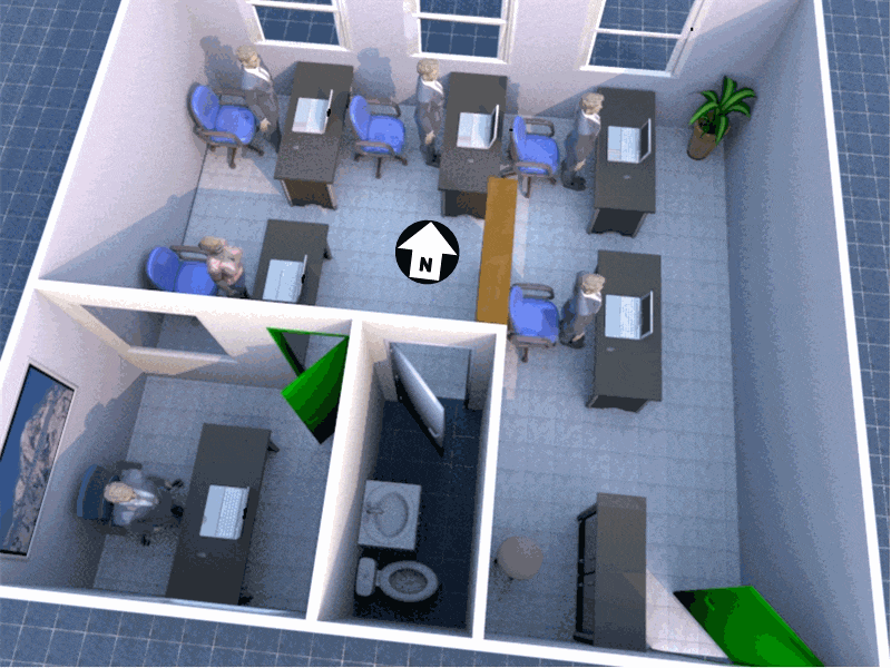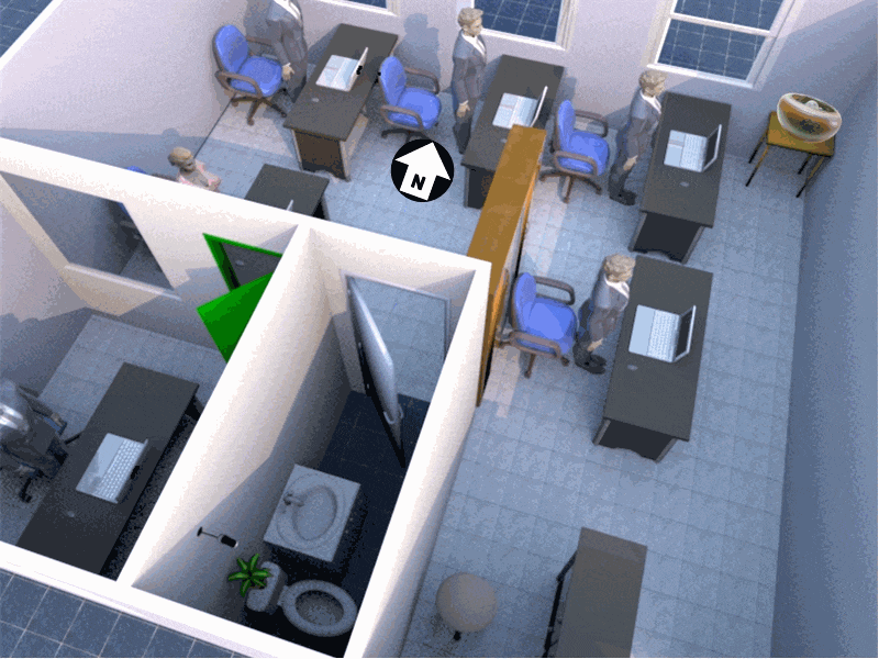 辦公室如果財位剛好落於廁所內,如圖示中坐南朝北之辦公室