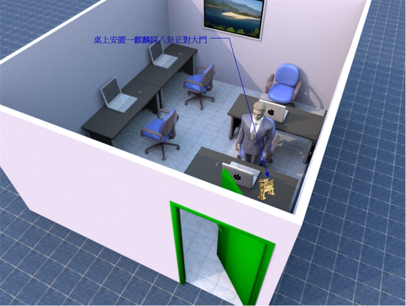辦公桌衝門擺放,有個人辦公室的主管也一樣,其辦公桌不可衝門擺放
