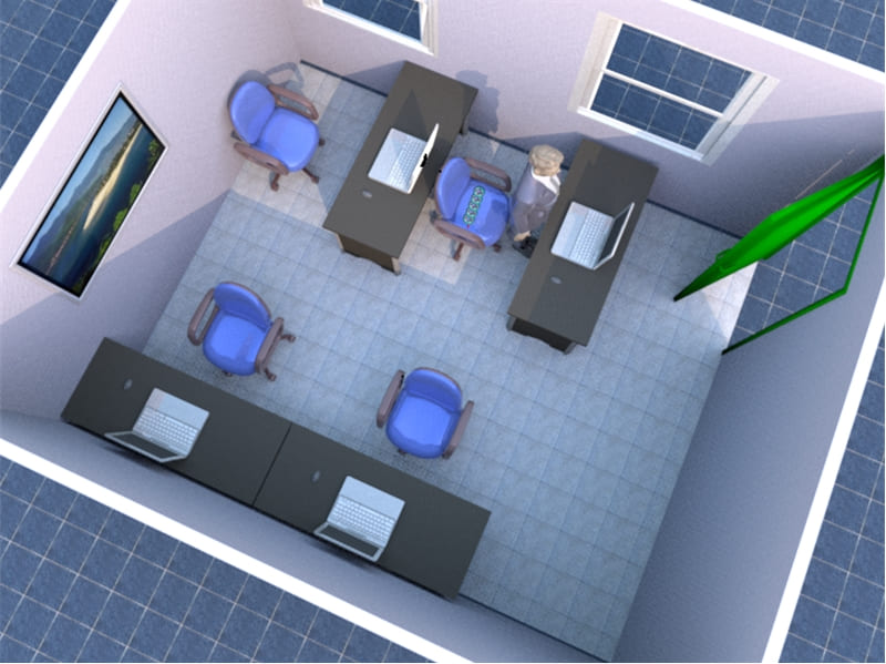 只有服務台的桌子才可以對大門而設,內部辦公室的空間就不宜有正沖門路的辦公桌。