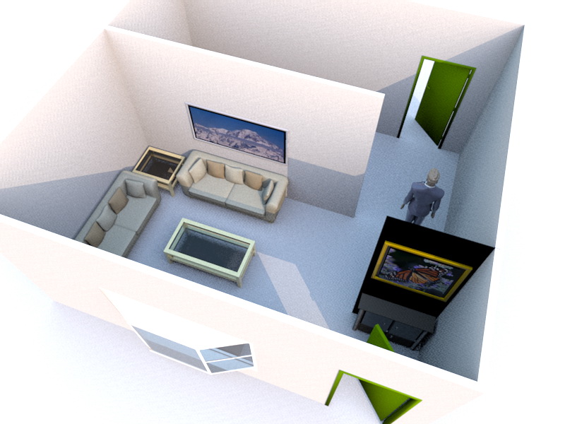 上圖 一為例,您可以在大門和落地窗之間設置一道不透光之玄關來遮擋化解,