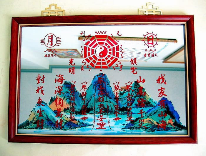 | 簡介: | 所謂「山海鎮」,可以用三種材質製成: 有木雕、或是畫於鏡面上;或書畫於紙上焚燒。 雖然材質不盡相同, 但其中之圖案都會按以下之格式去做繪製: ☆正中央畫八卦太極圖 ☆南北各安日與月 ☆中間畫三山五嶽 ☆四周是五湖四海 市面上有多種山海鎮一樣不離此格式,換湯不換藥化煞效果大致相同, 山海鎮具有移山倒海、將煞氣完全排除、顛倒陰陽之功效; 所以在風水化煞上應用相當廣泛, 面對各式形煞都有化煞效果,因為其能顛倒陰陽,鬼魅遇到會迷失方向, 所以對於犯陰之地,如墳墓、屠宰場、醫院、殯儀館...等, 可以說妙用無窮。 |