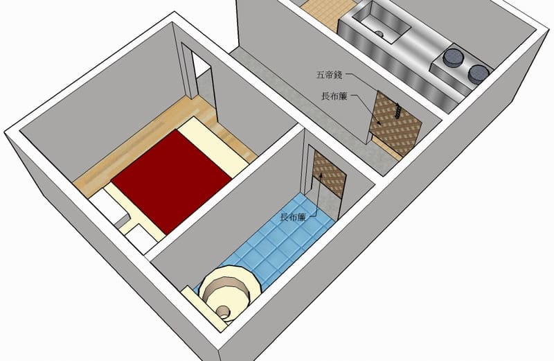 如果無法更改廁所或廚房之門路,建議您可以在廁所門和廚房門都加掛長布簾