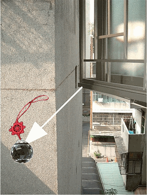 於正對壁刀處懸掛一顆切面水晶球