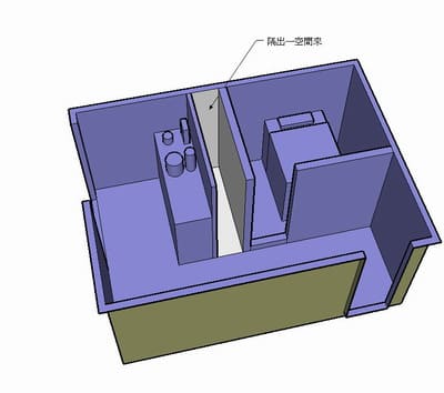 化解方式: 建議更換其他房間為宜,如果無法更換房間, 建議可以再神桌和房間之間再隔出一道空間來化解。 圖解: