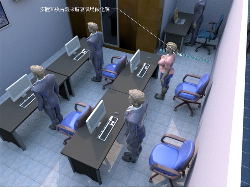 ◎用一組36枚古錢將凸出之地氣區隔來做化解。