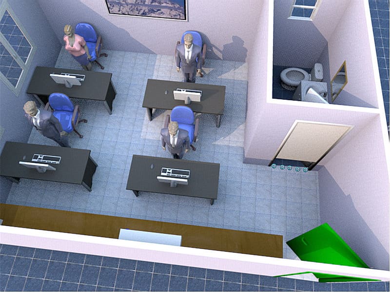 辦公室的大門一打開,絕對不可以有正對廁所門或是廁所門就開在門旁之情形,