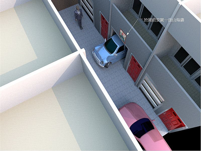 如果無法另覓他處,建議您可以在屋前安置一面大山海鎮,