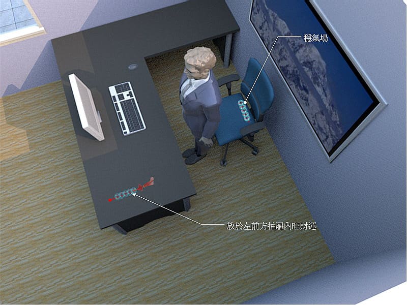 以上圖為例,將五帝錢 src=安置於座墊下可以穩住提升自身之氣場